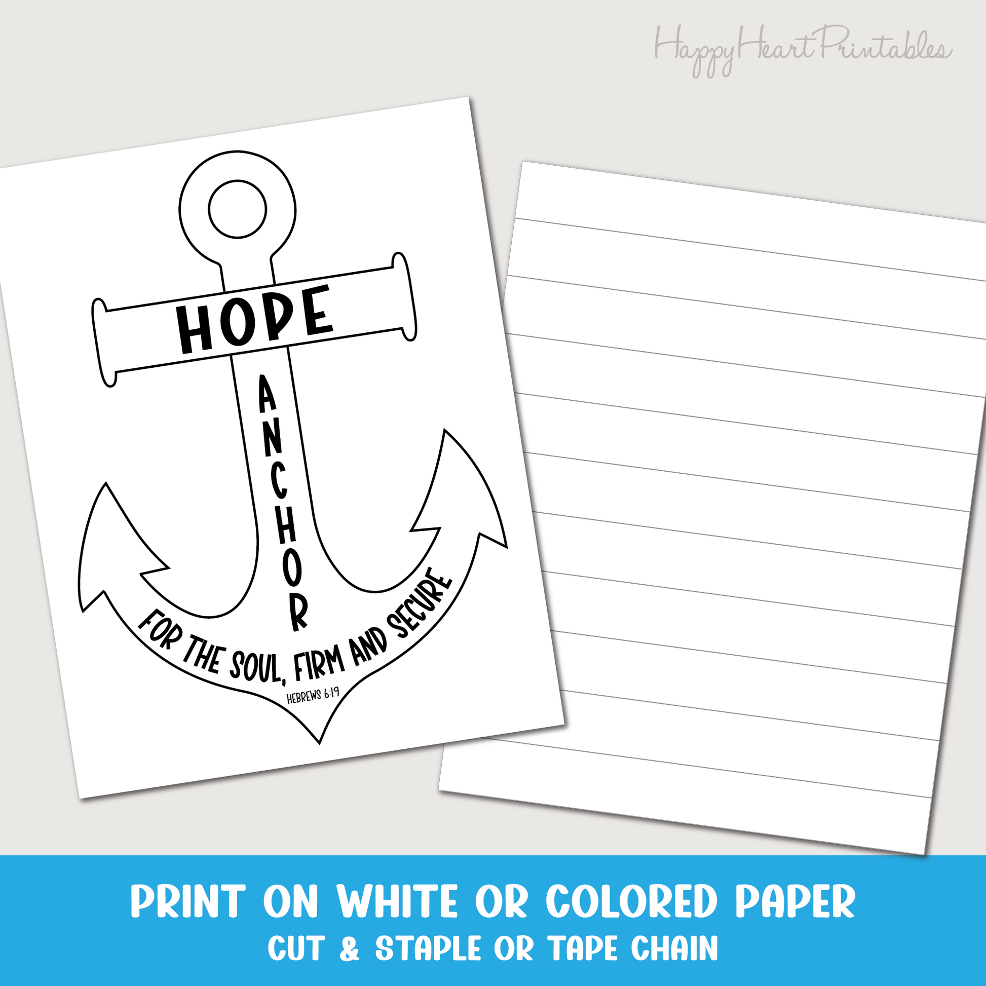 "We have this hope as an anchor for the soul, firm and secure." Use this printable anchor craft to remind kids of the hope we have in Christ. This easy and fun Bible craft can be used at home or at church. Print on colored paper or print and then color.